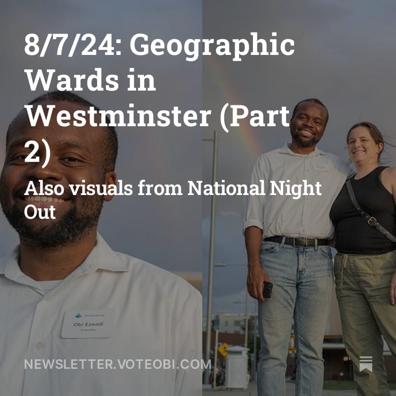 Also, if you need to catch up on our journey of changing Westminster from all at-large to a Wards system, go read last week’s update: