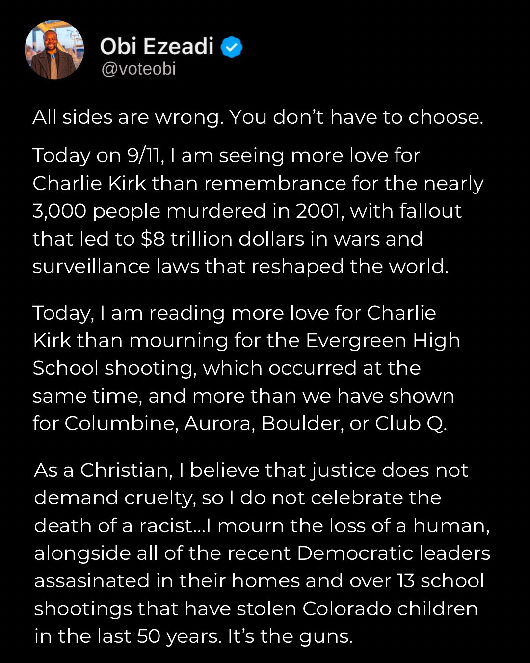 Charlie Kirk, 9/11 and Evergreen High School