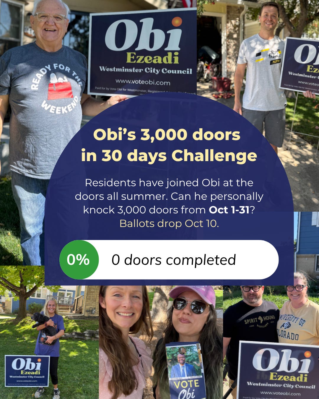 Our next chapter: for the month of October, my volunteers will be getting out the vote across all of Westminster. Also, today I launched a personal challenge:
