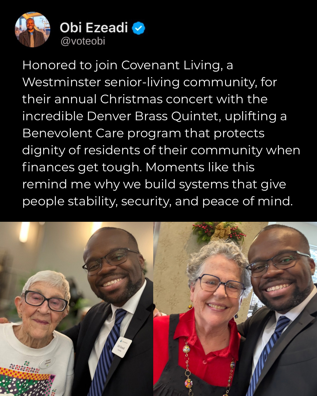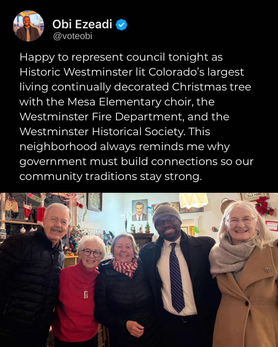 I recognize that for many people this season can carry grief, loss, or difficult memories, and I want to honor and respect everyone, including those who do not celebrate. For those who do, I wish you a season of light, service, and community.