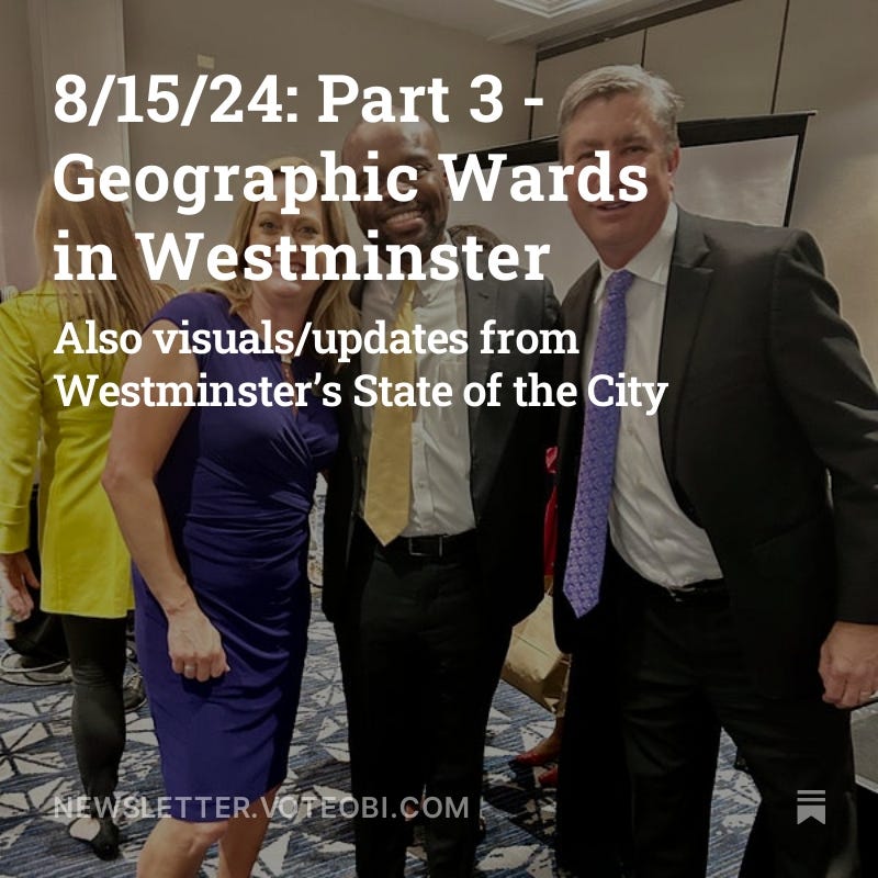 In 2019, the Westminster Police Department introduced the Mental Health Co-Responder Program, an innovative initiative that pairs police officers with licensed mental health professionals to address the unique needs of individuals experiencing a mental health crisis. Since joining the council in 2021, I have actively advocated for growing this team to meet the increasing demands for mental health crisis services. This program has grown to include four clinicians, a case management coordinator, and a supervisor, allowing for coverage seven days a week, from 6 am to 11 pm most days. The program’s primary goals include: