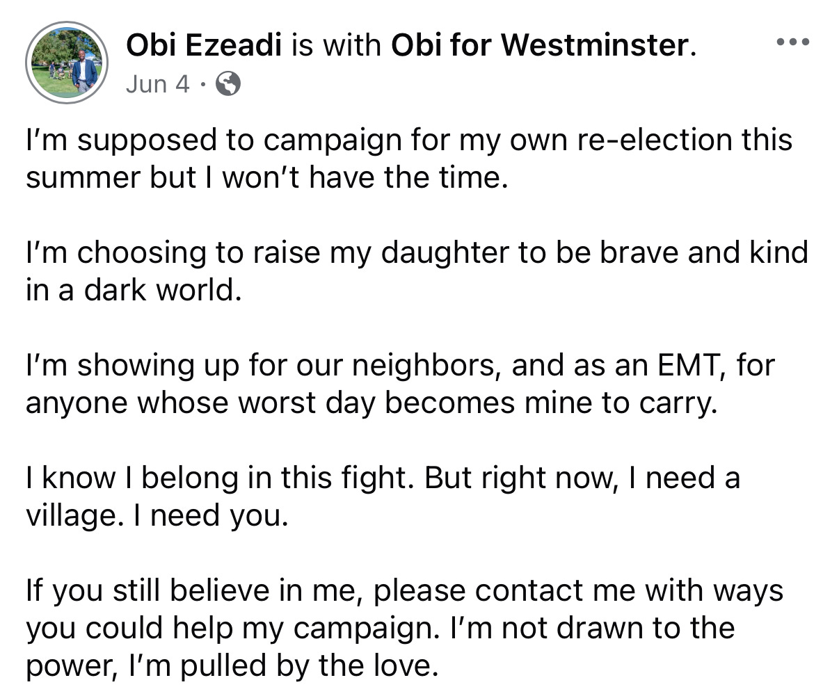A few weeks ago I shared my heart in the below message and you answered with love, encouragement and belief. There are a couple of new opponents about to launch against me. My birthday is on Saturday (June 28) and if you still believe in this work, please chip in whatever you can to help me get re-elected and defend the promise of America in Westminster.