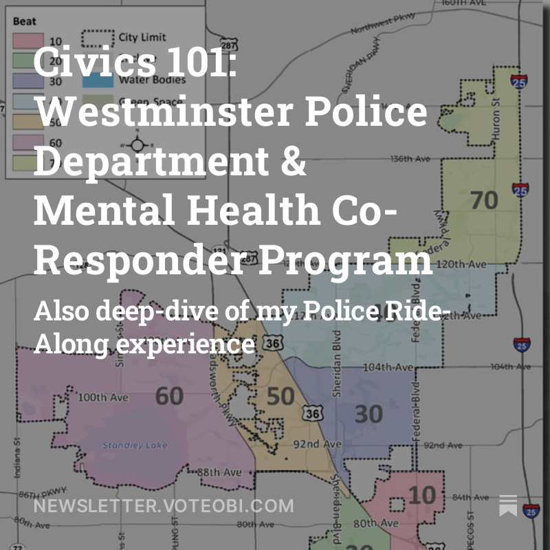 Before we jump in: throughout the Wards update below, I will sprinkle in visuals from several events from around Westminster: Annual Volunteer Appreciation Dinner, our City Council Town Hall focused on public safety, and meeting with Stratford Lakes HOA.