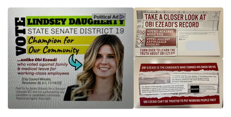 Fun fact: the dark money organization that is spreading this lie is anti-public education organization called "Better Schools for a Stronger Colorado". Look them up and then ask yourself: why are they working so hard against Obi in this election?