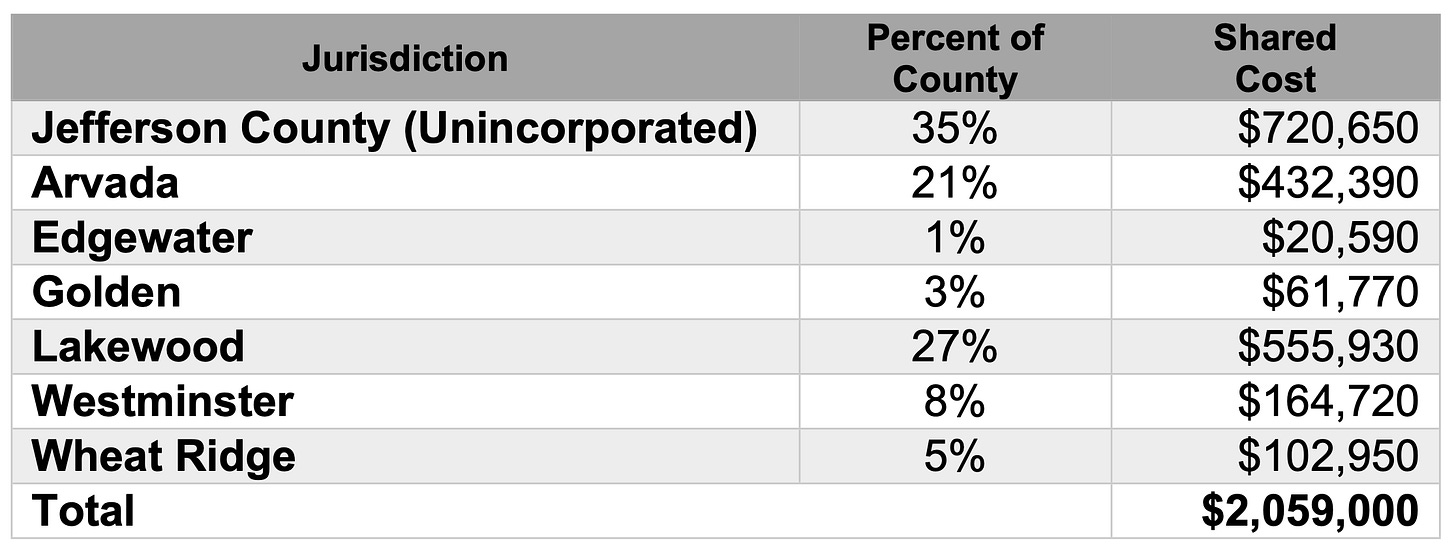 Westminster opted to support the one-year countywide agreement, which will include the MAC (our Adams County partner facility) and allow Westminster clients to access other Jefferson County shelters. It also supports long-term plans for a second navigation center closer to us. Since joining Council, I’ve prioritized real investment in addressing homelessness, but there’s only so much a city can do alone without regional support. Thanks to our existing efforts, and with this new cost-sharing model, Westminster’s net contribution would be just $55,720 (which is far less than the $164,720 gross share you see below):